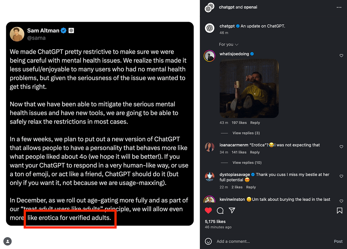 Η γραμμή ανάμεσα στη δημιουργία, την ηθική και την ψυχαγωγία αρχίζει να θολώνει. Θυμίζω πως ήδη το Grok της xAI (Elon Musk), έχει τέτοιο περιεχόμενο, είχε αναφερθεί σε εξαιρετική του ανάρτηση σε αυτό ο Δημήτρης Δημητριάδης.