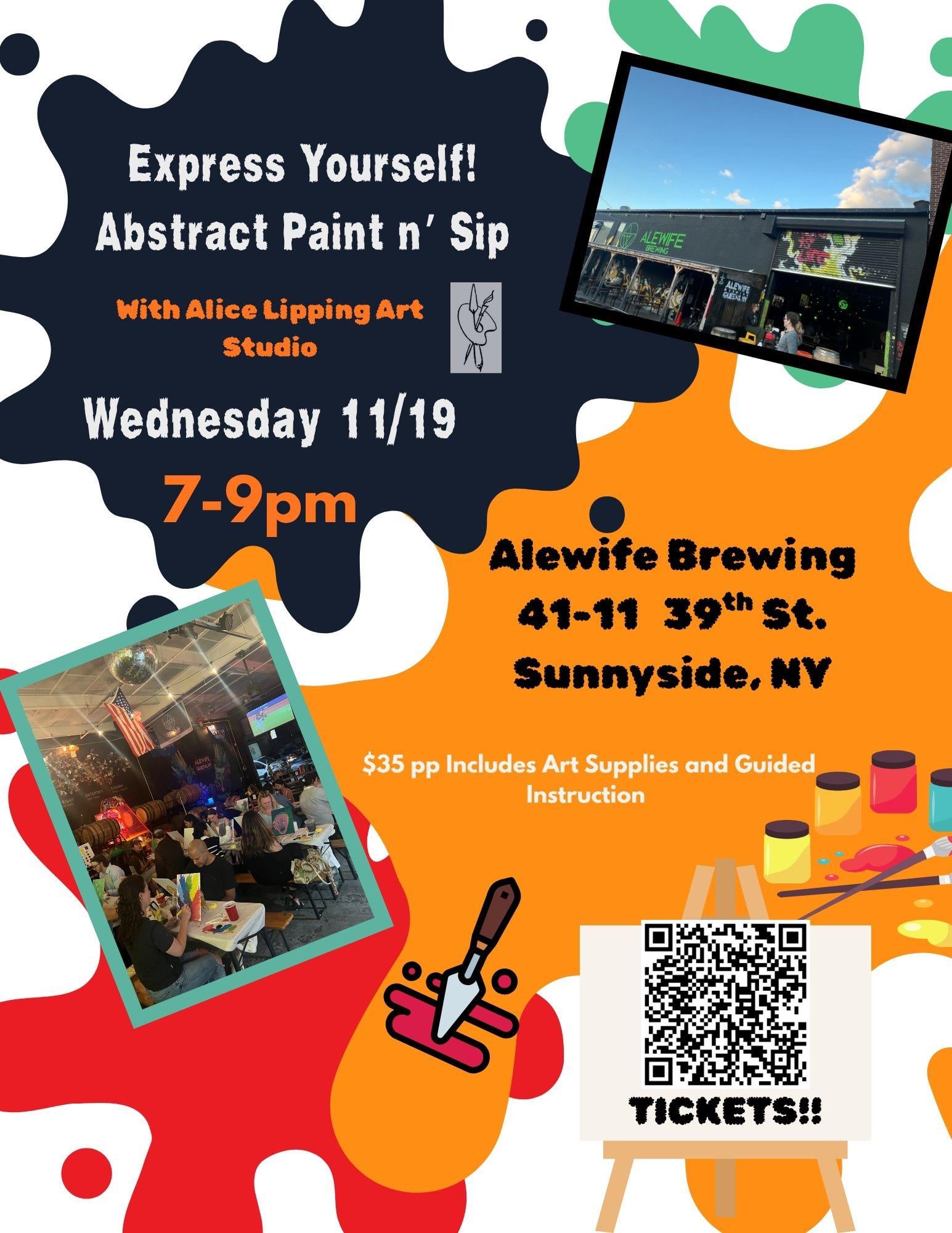 Looking for a fun, creative night out? Come unwind and express yourself at our Abstract Paint n’ Sip in Sunnyside!