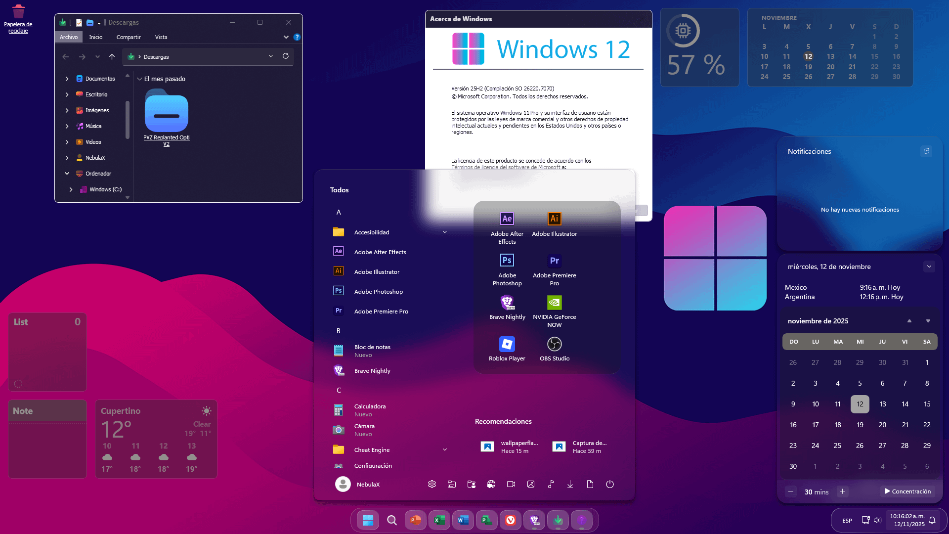 SĂ© que el diseño glassmĂłrfico no es del gusto de todos, pero este es mi concepto personal de cĂłmo podrĂa llegar a verse un Windows 12 posible.
