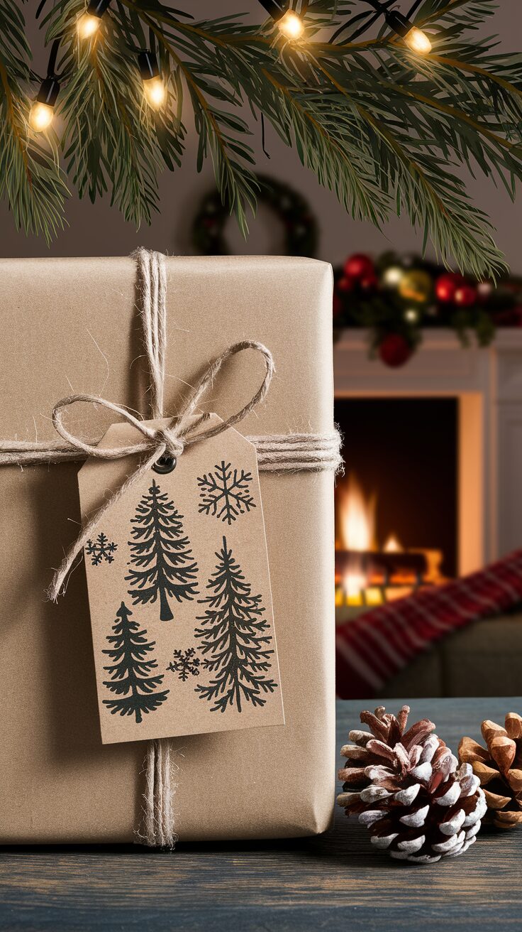 How to Make: Use a rubber stamp, ink pad, and kraft paper to create unique designs. Add a hole punch and twine for the finishing touch.