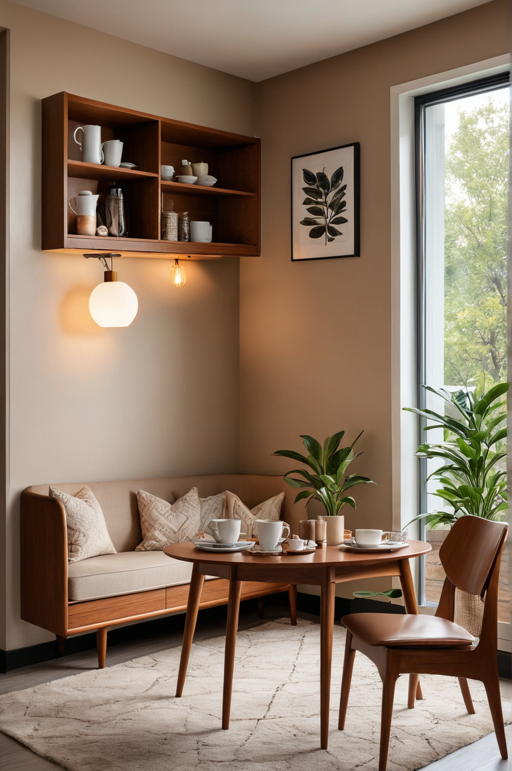 The perfect mid-century modern coffee nook features sleek lines and a variety of textures, from smooth wood surfaces to cozy textiles. Incorporate pieces like a stylish walnut side table or a charming credenza to create that timeless vibe.