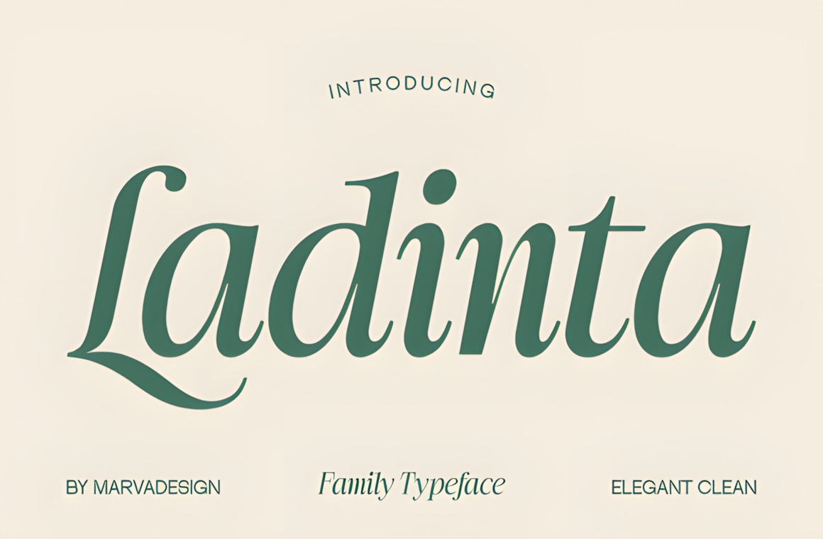 A delicate serif with soft curves and subtle contrast, Ladinta brings a refined, feminine touch to wedding stationery and high-end beauty branding. Its flowing letterforms exude timeless grace.