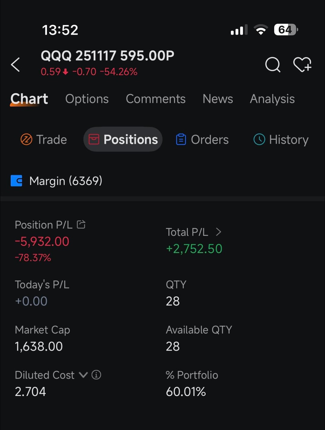 595 strike, 38 expire monday, 12 expire tuesday (three screenshots).