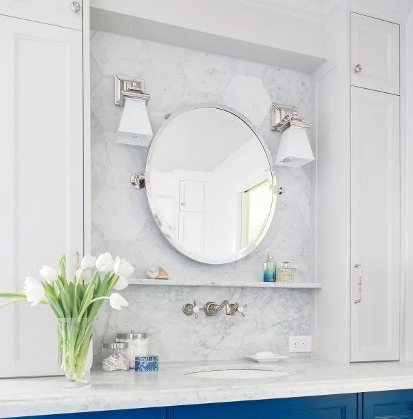 (Oh, and, of course, a big bath tub, some linen storage, an extra sink for the Mr., some great lighting and mirrors, and maybe a seated vanity . . . Well, all those would be nice in a beautiful bathroom, too 😉