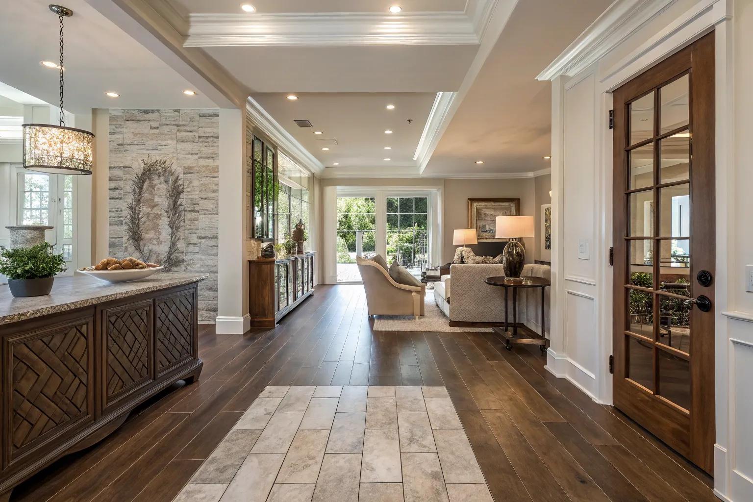 - Herringbone Wood Tiles: Capture attention with stylish herringbone wooden tiles that highlight your transition area beautifully.