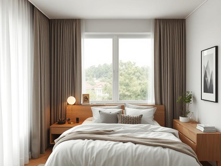 Lighter shades make a small room appear bigger. Use white, beige, or pastel tones. Light-colored furniture and bedding also help reflect natural light, making the room feel airy. Adding mirrors enhances the brightness by bouncing light around the space. Sheer curtains instead of heavy drapes allow sunlight to flow in freely. A neutral color palette creates a serene and open atmosphere in a small bedroom.