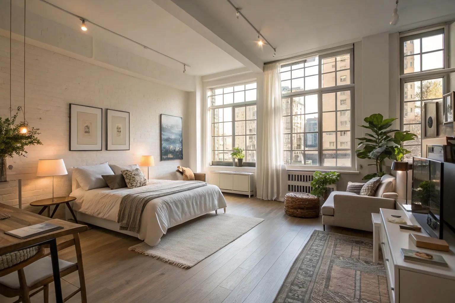 Strategically placed mirrors can make your studio appear larger. I often use this trick to enhance both natural light and perceived space. It’s an age-old technique, but still incredibly effective. I consider it a must-have for small spaces.