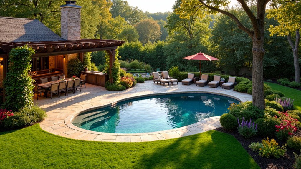 I’ve chosen flexible furniture that effortlessly transforms from lounging to dining, while multifunctional pathways guide me through lush greenery.