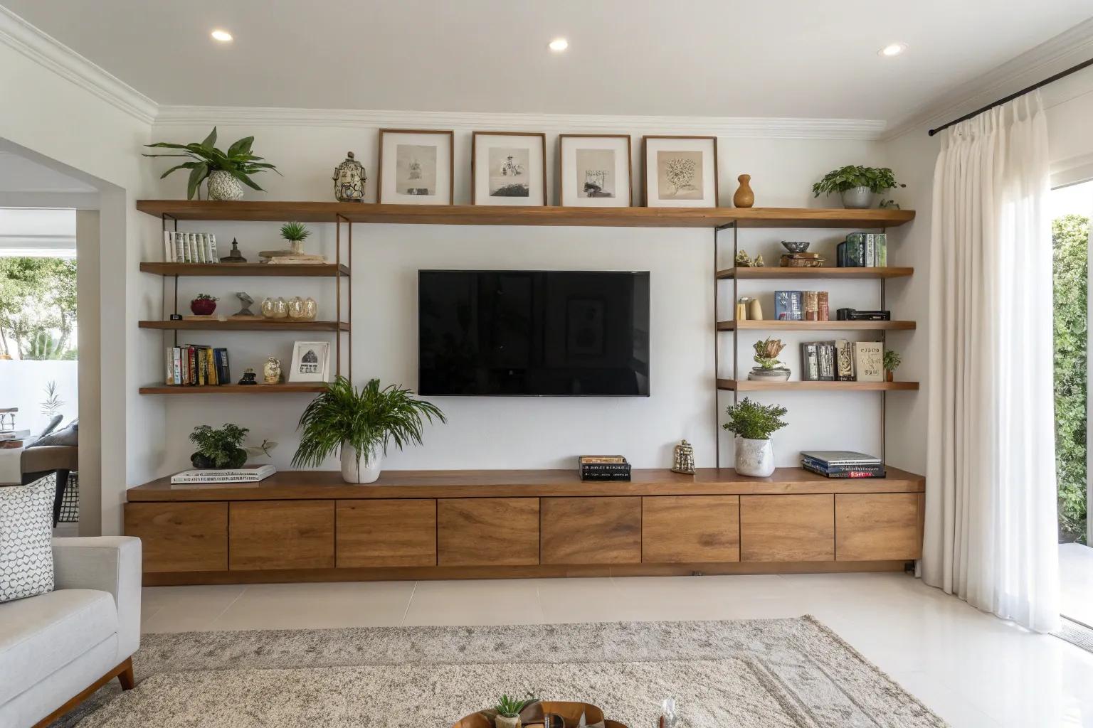- Set of Floating Shelves: Enhance your TV space with floating shelves, blending perfectly with wall colors and furniture.