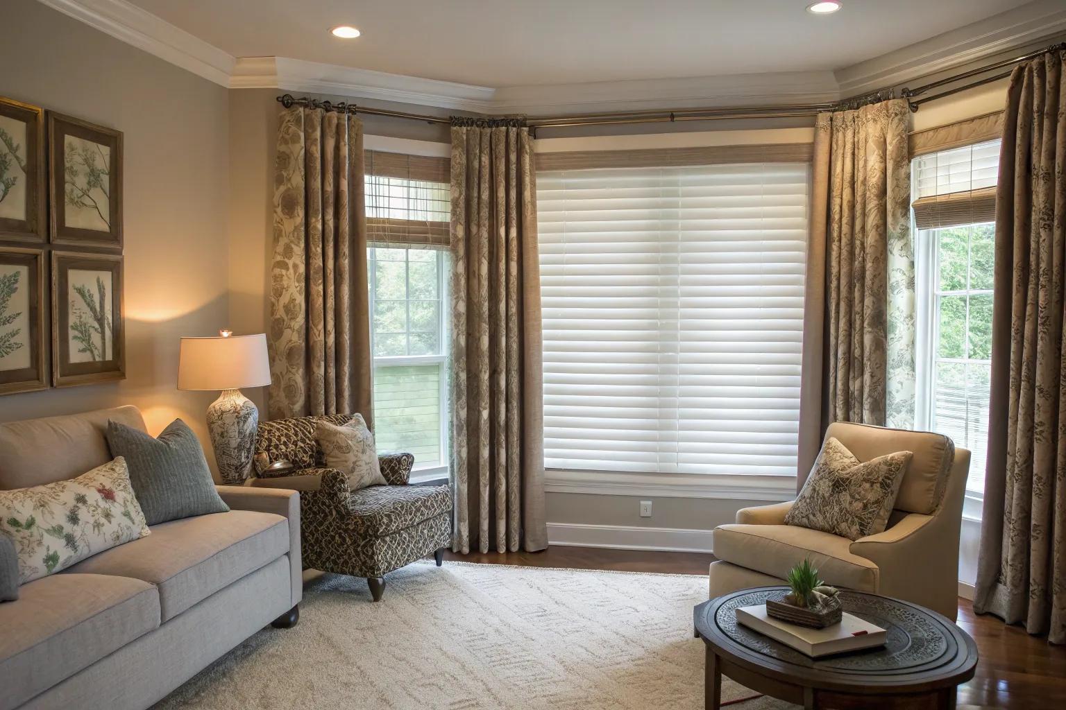 Layered curtains offer flexibility and style.Layered curtains offer flexibility and style.