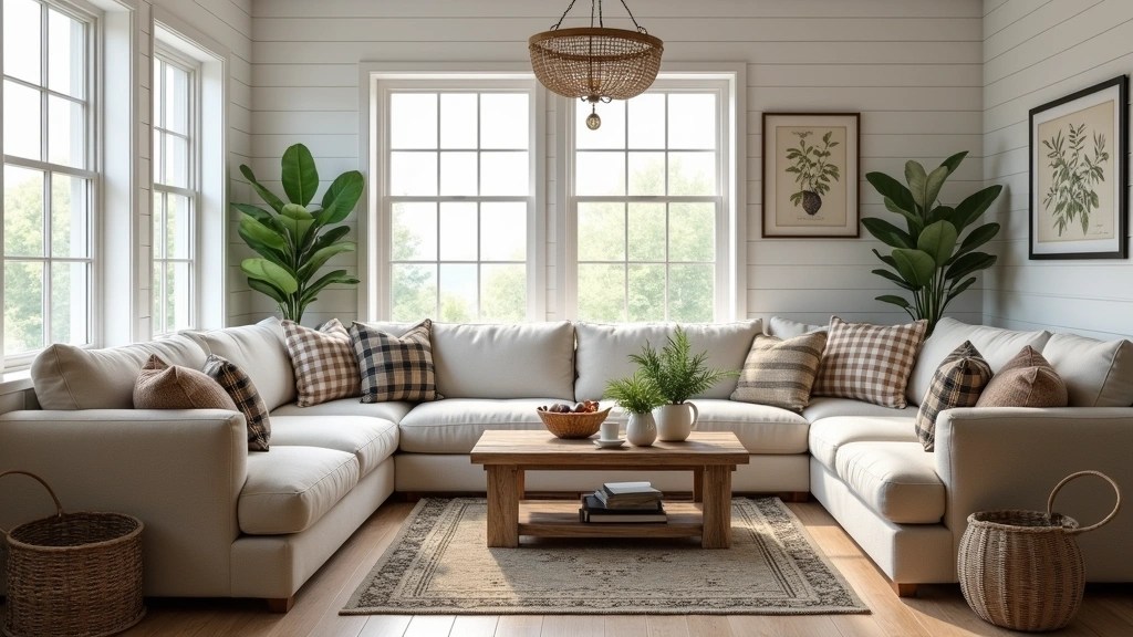 Look for pieces that feature distressed finishes and natural wood tones, as these elements add warmth and character. A cozy sectional sofa, like this Cozy Sectional Sofa, can become the centerpiece of your living space, offering both comfort and style.