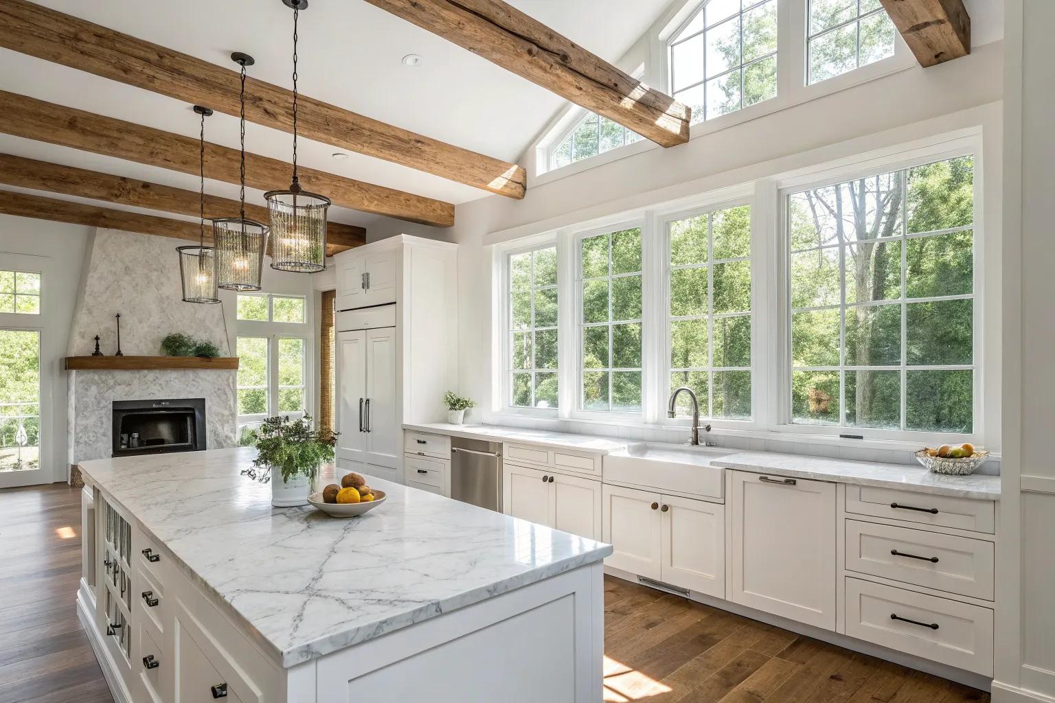 - Reclaimed Wood Beams: Add a historical touch to your kitchen with eco-friendly reclaimed wood beams.