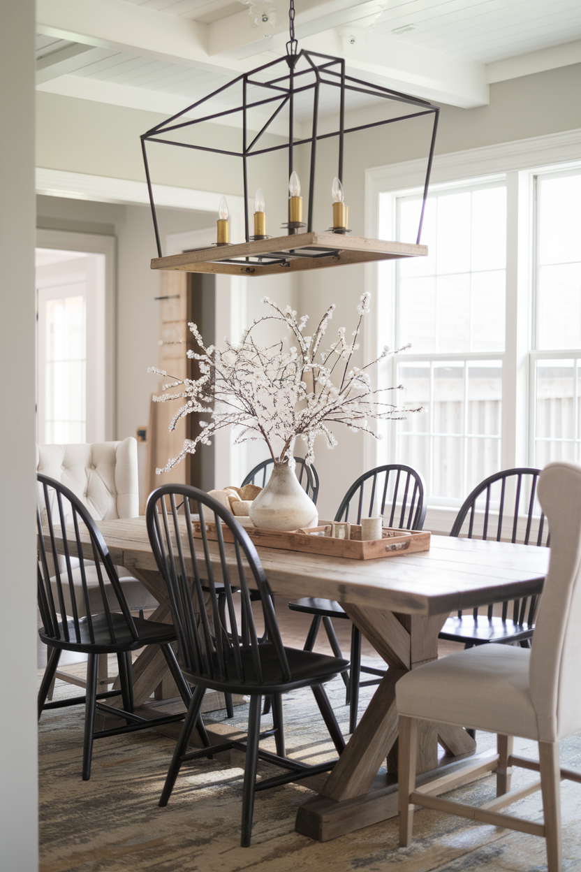 Lighting is everything. A bold light fixture can totally transform your space. I love a modern farmhouse chandelier with black metal, distressed wood, or even white or cream beaded accents. It draws the eye up and anchors the whole room with serious charm.