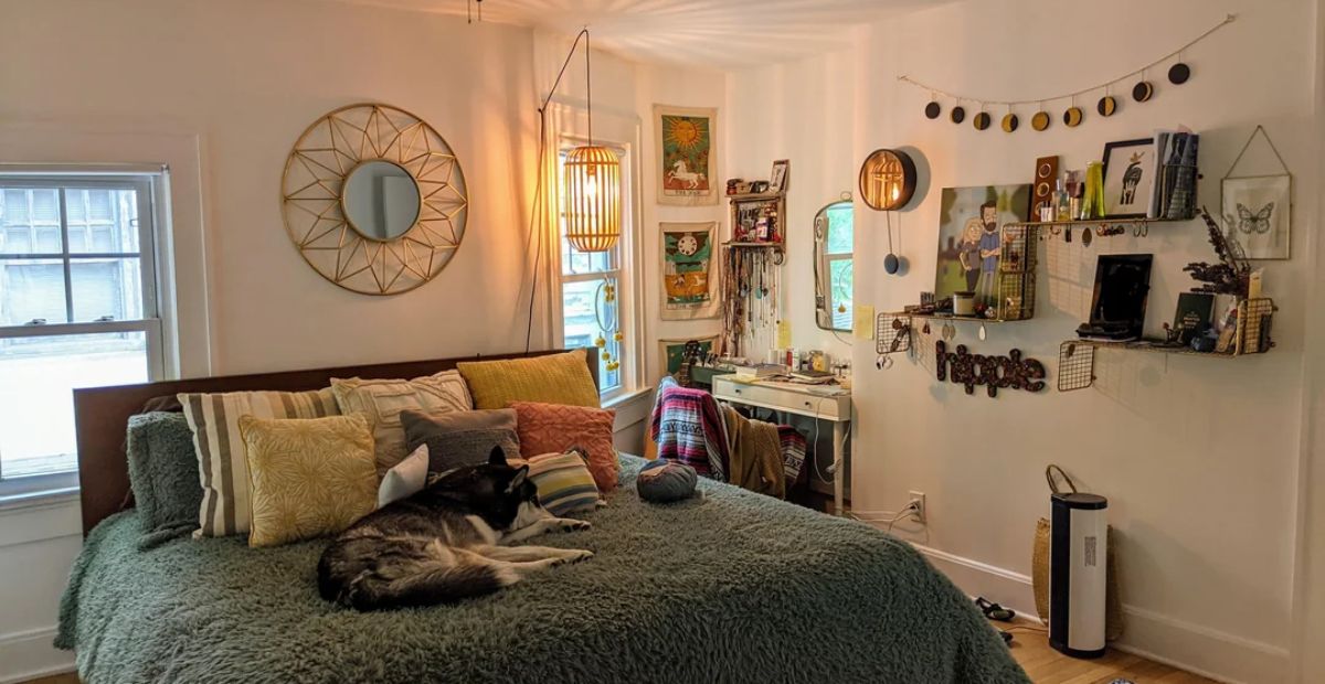 One of my favorite finds came from a Reddit user who shared their bohemian-inspired bedroom tucked inside a 1917 bungalow in Kansas City.