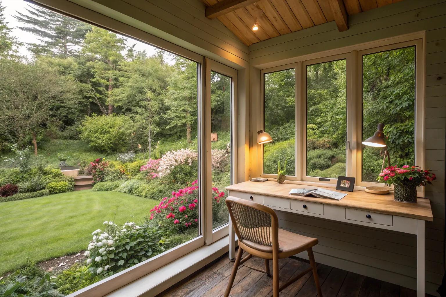 Large windows or glass walls are your best friends in a garden office, letting in natural light and offering stunning views. In my own space, the morning sun is my favorite companion, energizing my workspace naturally.