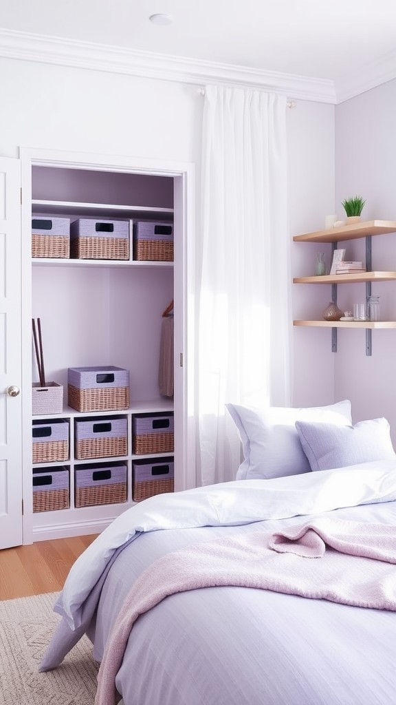 Another excellent option is lavender-colored storage boxes. These can be placed on shelves or under the bed, offering a stylish way to hide away seasonal clothing or linens. For an added touch, personalize them with labels that complement your décor, which creates organization without sacrificing aesthetics.