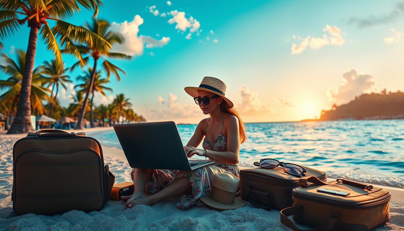 A reliable internet connection and a TEFL certificate are needed. Websites like VIPKid and iTalki can connect you with learners everywhere. This lets you choose your work hours while you travel.