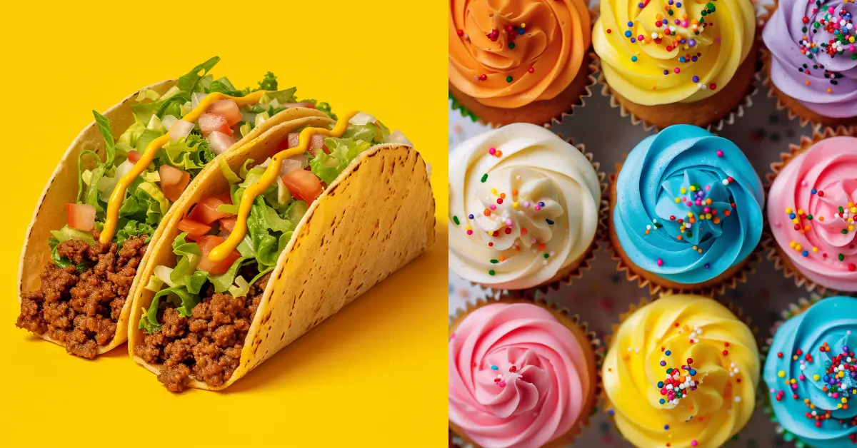 Prompt: Colorful frosted cupcakes top-down view, sprinkles in focus, bright and fun.