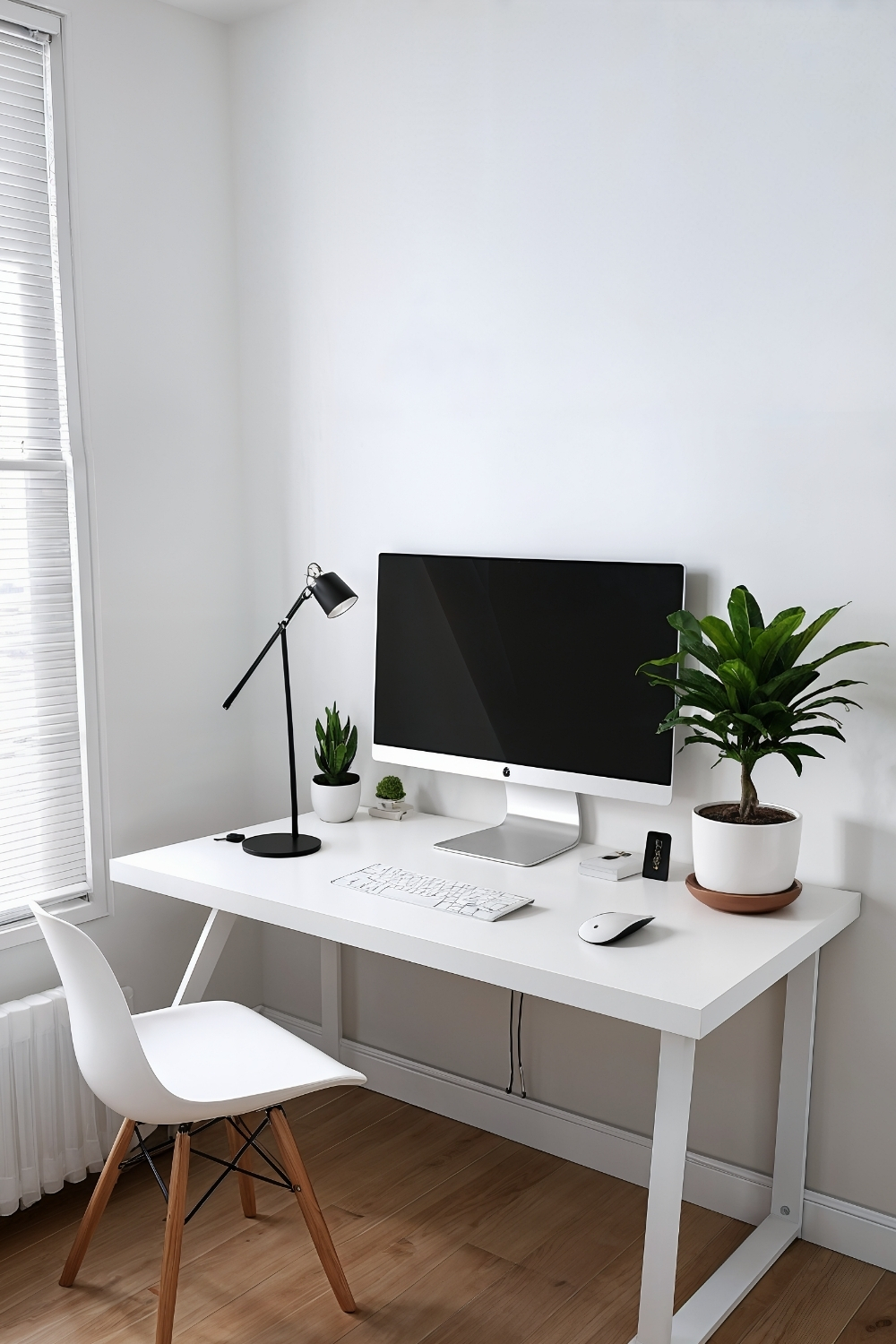 Simplicity can be incredibly effective. A clean desk with just the essentials—a sleek monitor, wireless keyboard, and mouse—can help you focus without distractions. Opt for a neutral color palette and hidden cable management for that ultimate clutter-free vibe.