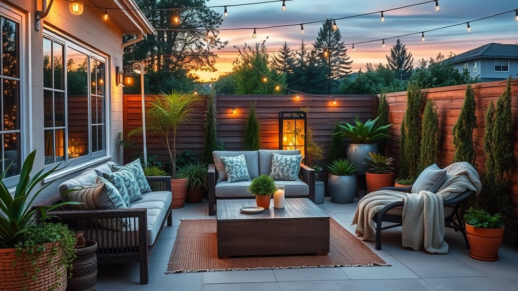 Create a cozy haven by layering various textures on your patio. Start with a plush outdoor rug that adds warmth underfoot, then mix and match cushions in different fabrics like cotton, linen, and outdoor-rated velvet.