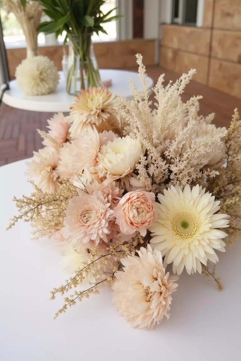 Tall flowers or greenery standing above the table create a dramatic effect.