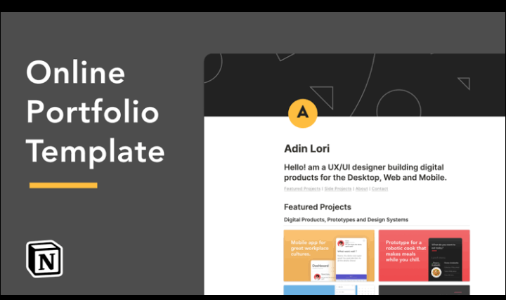 The designer portfolio by Ganesh R is an aesthetic one. Freelancers, digital marketers, and many social media managers would be impressed with this notion portfolio template because it portrays your skills in a beautiful manner.