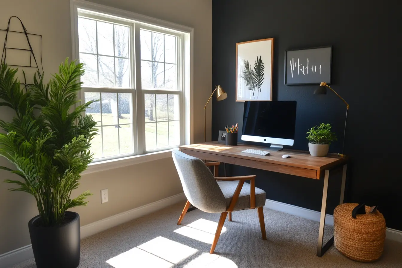 A workspace near a window provides natural light, which can boost your mood and productivity. Decorate with light, airy curtains and add houseplants for a vibrant and refreshing atmosphere. The combination of sunlight and greenery can reduce stress while keeping you motivated.