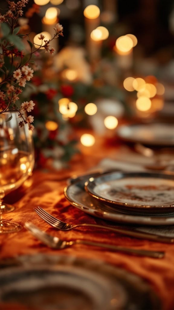 To achieve this look, consider the height of your candles. Taller taper candles can draw the eye upward, making your table setting feel more dynamic. If you’re using brass holders, they can shine against your tablecloth, reflecting the candlelight beautifully. For wooden holders, choose ones that have a bit of texture to add depth to the arrangement.