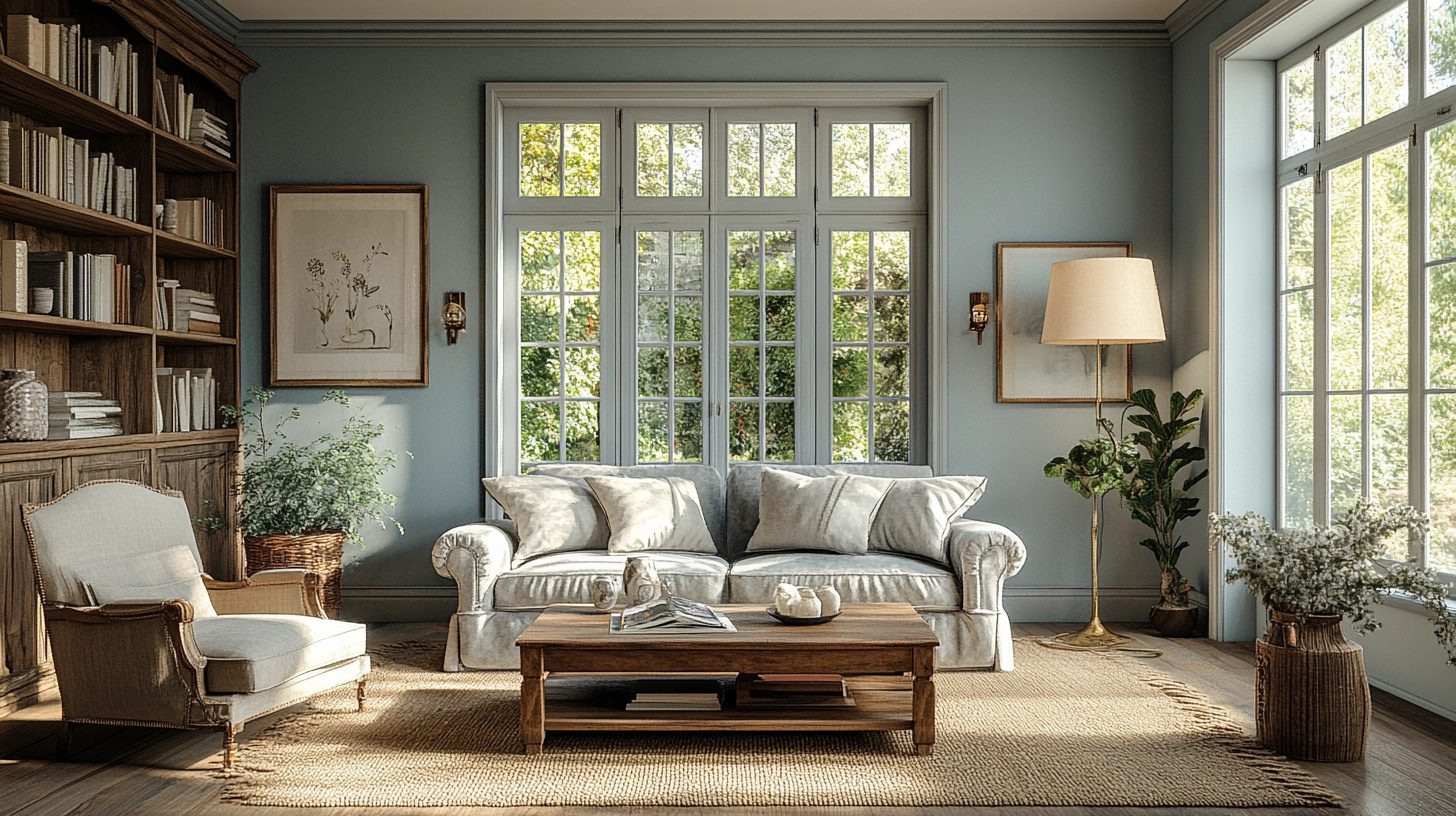French Provincial Fusion mixes rustic charm with modern aesthetics for a romantic living room.