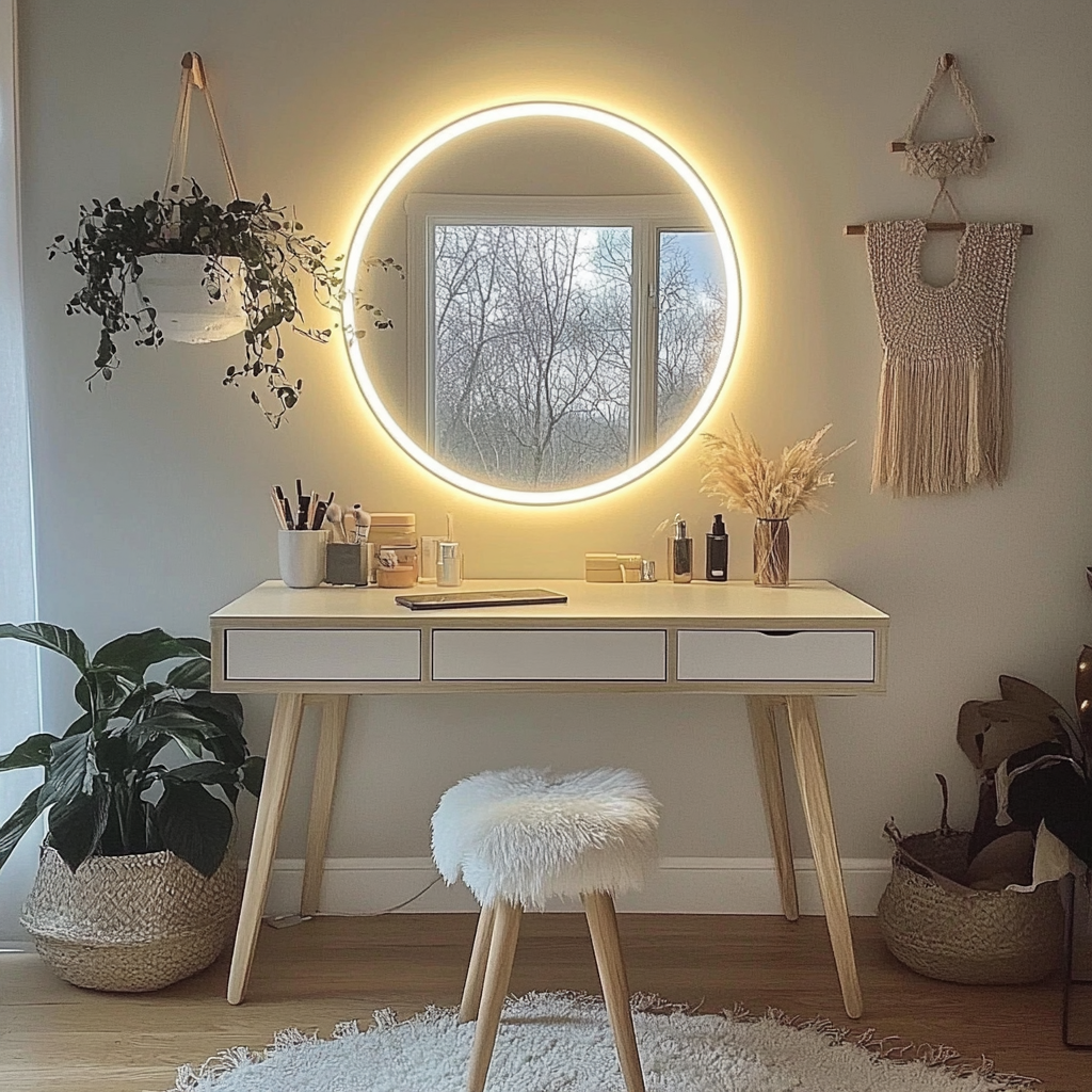 - Lighting: Good lighting is essential for any makeup vanity. Opt for adjustable LED lights or a mirror with built-in lighting to ensure perfect application.