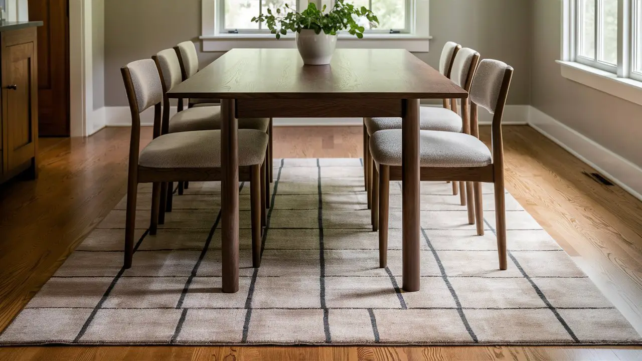 Neutral-tone rugs are a timeless and versatile choice for any dining room.