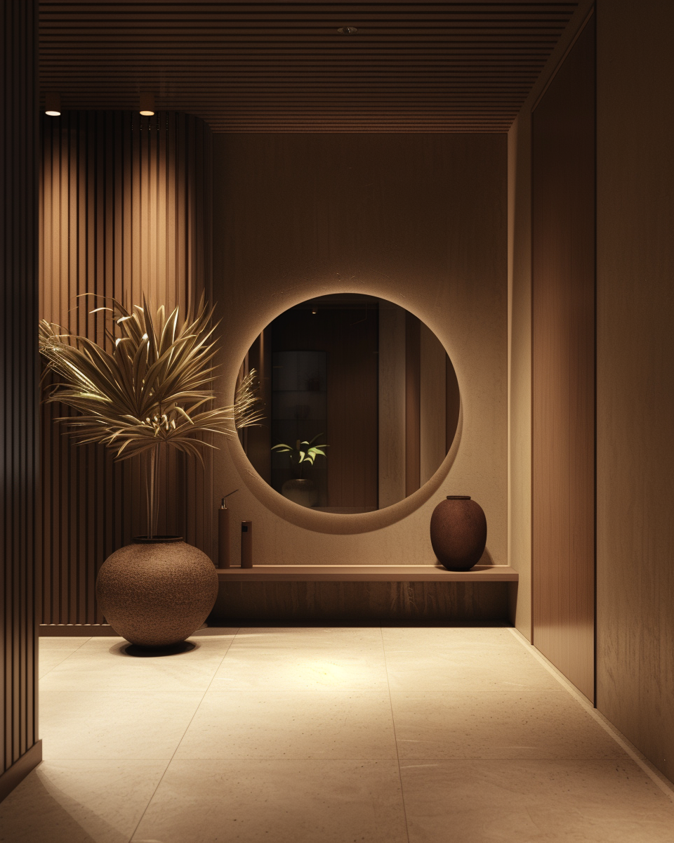 An alcove in the hallway where art, calligraphy, or flower arrangements are displayed. It serves as a focal point and reflects the homeowner’s taste.