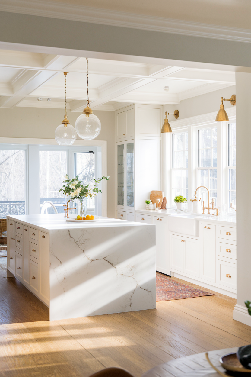 If you’ve ever swooned over a sleek marble countertop that drapes all the way to the floor, that’s a waterfall island—and I am obsessed. It’s clean, sculptural, and adds instant luxury. Whether you go with quartz, marble, or even concrete, the effect is showstopping.