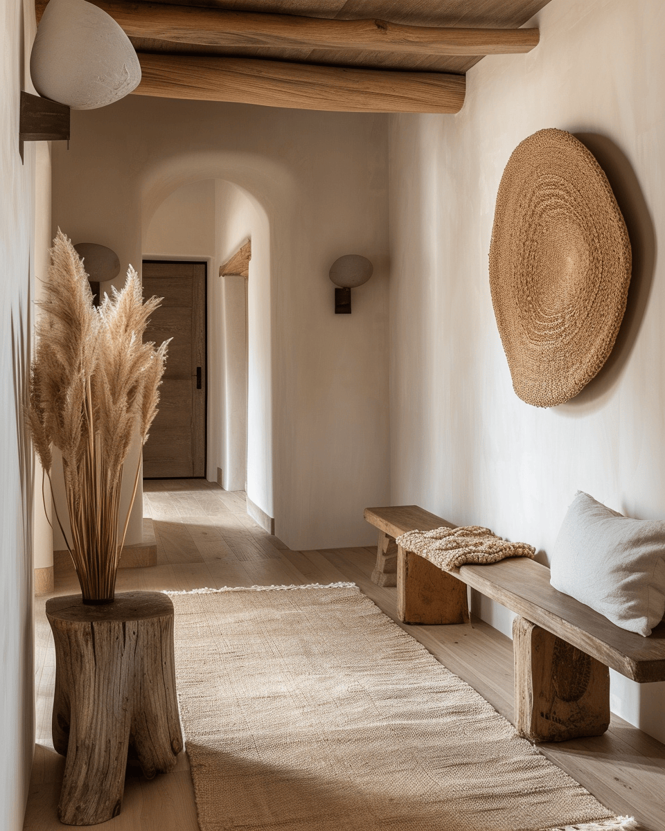 Picture this, stepping into your hallway that’s not just a passageway, but a vibrant expression of you. Imagine soft, colorful runner rugs underfoot, walls adorned with handmade macrame art, and those quirky vintage tables you love so much. It’s all about creating a space that feels both welcoming and magically ‘you’. The beauty of boho decor is its flexibility and openness to personal interpretation, so you can mix and match these elements to create a hallway that truly reflects your personal style. To create a bohemian hallway consider incorporating the following 34 unique elements.