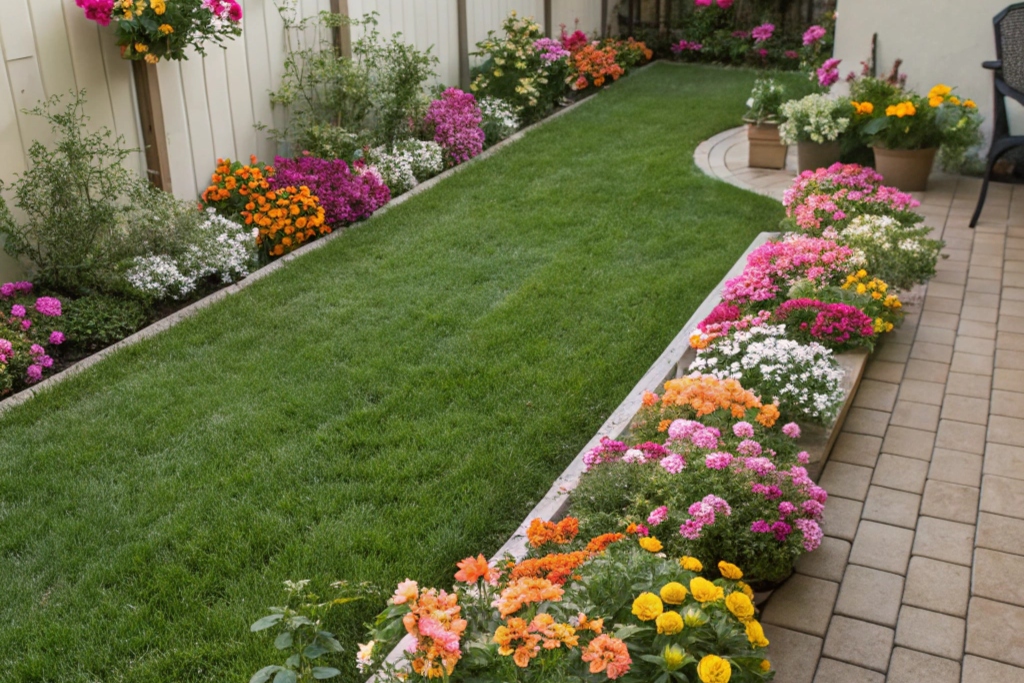 Brightly colored blooms like marigolds or petunias create a natural, cheerful frame for your yard, making it feel lively and full of energy.