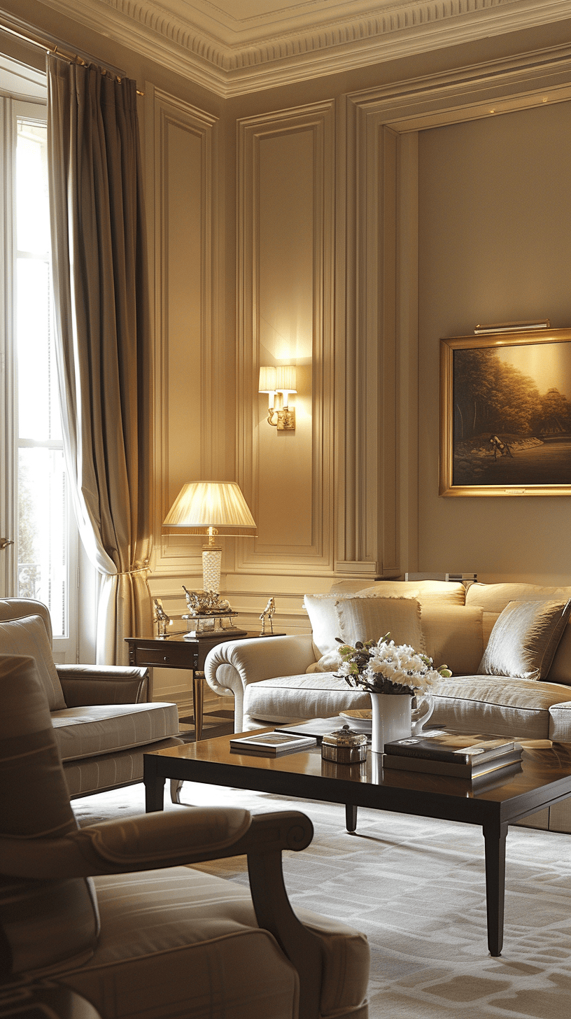 Gilded mirrors with intricate frames reflect light and add a touch of glamour to the room.