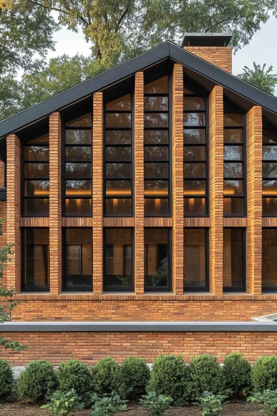 Gaze upon this magnificent brick house, where tall, sweeping windows form a mesmerizing A-frame. The brickwork plays peekaboo with sleek black frames that stretch upwards, making the house look like it’s perpetually raising its shades in awe. Who needs sunglasses with this much style?