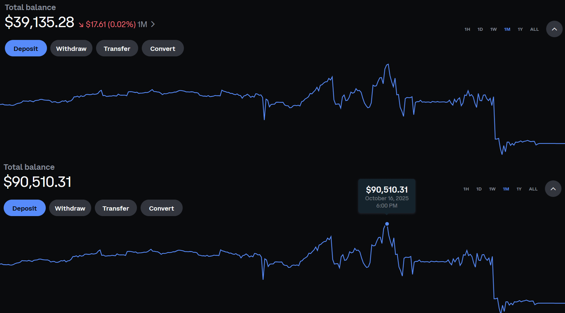 You can probably guess the moment I finally opened up to futures. I saw gold going up month after month, and figured it'd probably be a safe bet to just keep some futures sitting there longer term, so I sold all my crypto for gold futures on Coinbase the literal day before crypto crashed, bought the highest amount of gold and silver long contracts coinbase would let me, and got extremely lucky. So, I figured I'd use the excess money to go even higher risk for funsies and figured I'd try to ride crypto's rebound back up, and I figured I could just sell back out if it went back down to where I started.