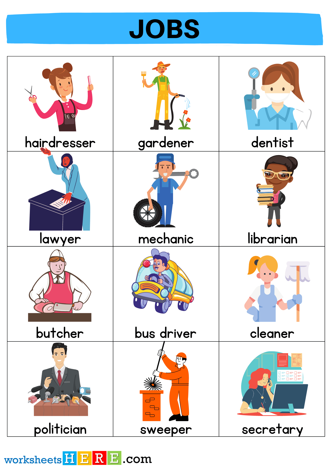+55 Jobs and Occupations Names with Pictures Flashcards PDF Worksheets For Kids