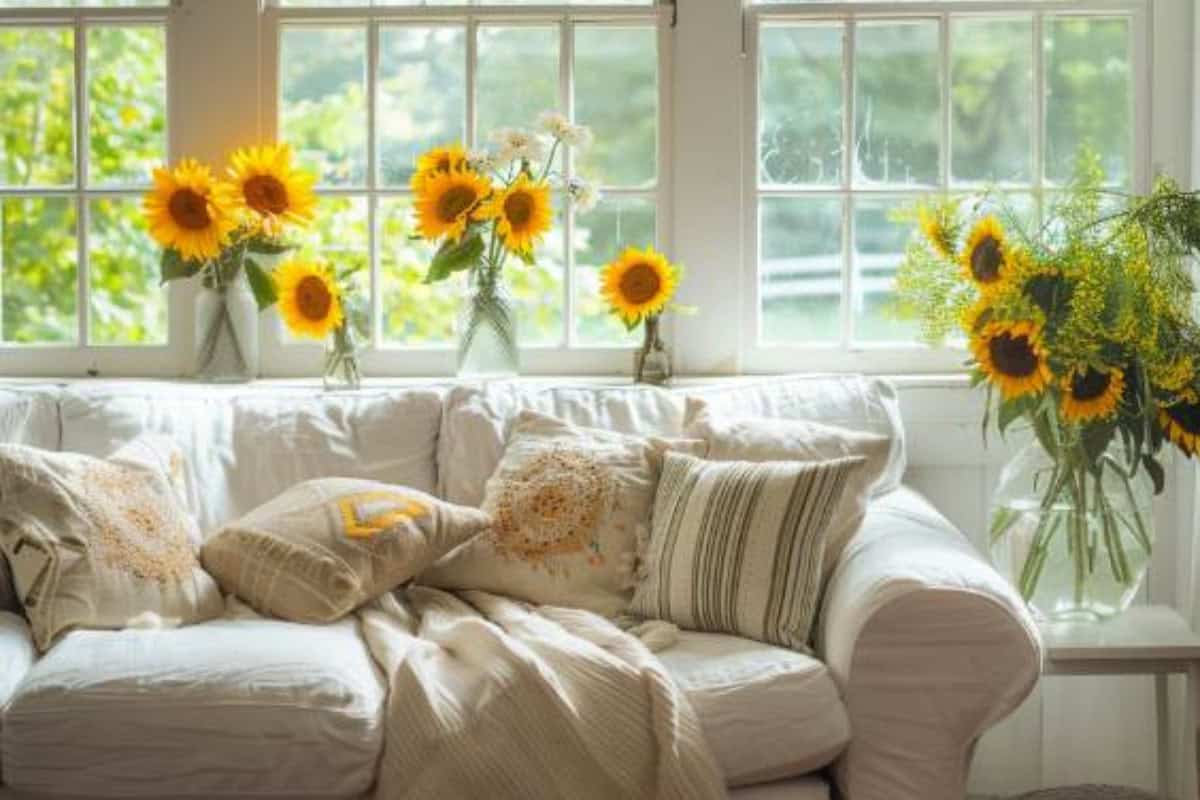 Line a windowsill with vases filled with sunflowers to capture the spirited essence of blooming summer fields.