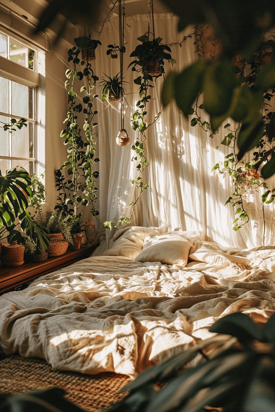Picture this, you’re stepping into your bedroom after a long day, and every inch of it feels like a warm hug. It’s not just a room; it’s your personal escape, a slice of Bohemia, where the walls echo your favorite memories and each decor piece tells your story. Can you see it? From cozy cushions that whisper stories of far off lands to wall decor that turns heads (and hearts), I’ve curated ideas that’ll satisfy that craving for comfort and style. And because I know you’re all about that unique touch, there’s a dash of DIY magic in there too! Here are 61 elements that can you use to create a stunning a Boho bedroom.