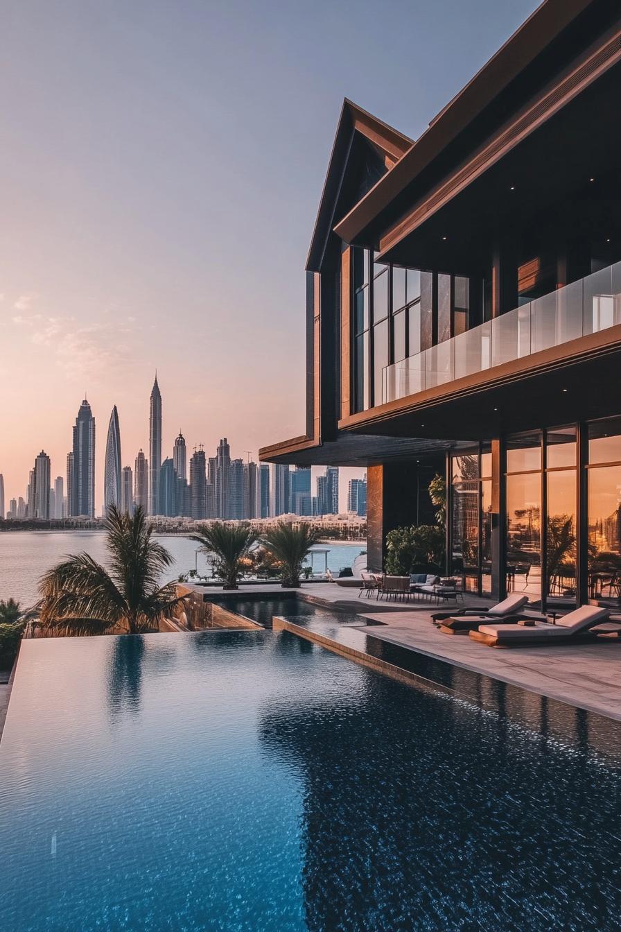 This stunning masterpiece flaunts modern architecture with a distinct angular design and expansive glass windows, welcoming in both light and envy from neighbors afar. The sleek infinity pool appears to merge with the metropolis skyline, offering a serene retreat for pondering the complex life choices that led here—like deciding between basil or cilantro for the mojito.