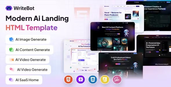 In conclusion, WriteBot – AI Landing HTML Template offers a comprehensive solution to create a websites for businesses in the AI sector seeking to establish a strong online presence and attract customers. With its sleek design, versatile layouts, and robust features, WriteBot empowers AI startups, content generators, and other related businesses to showcase their offerings effectively and drive success in the competitive digital landscape.