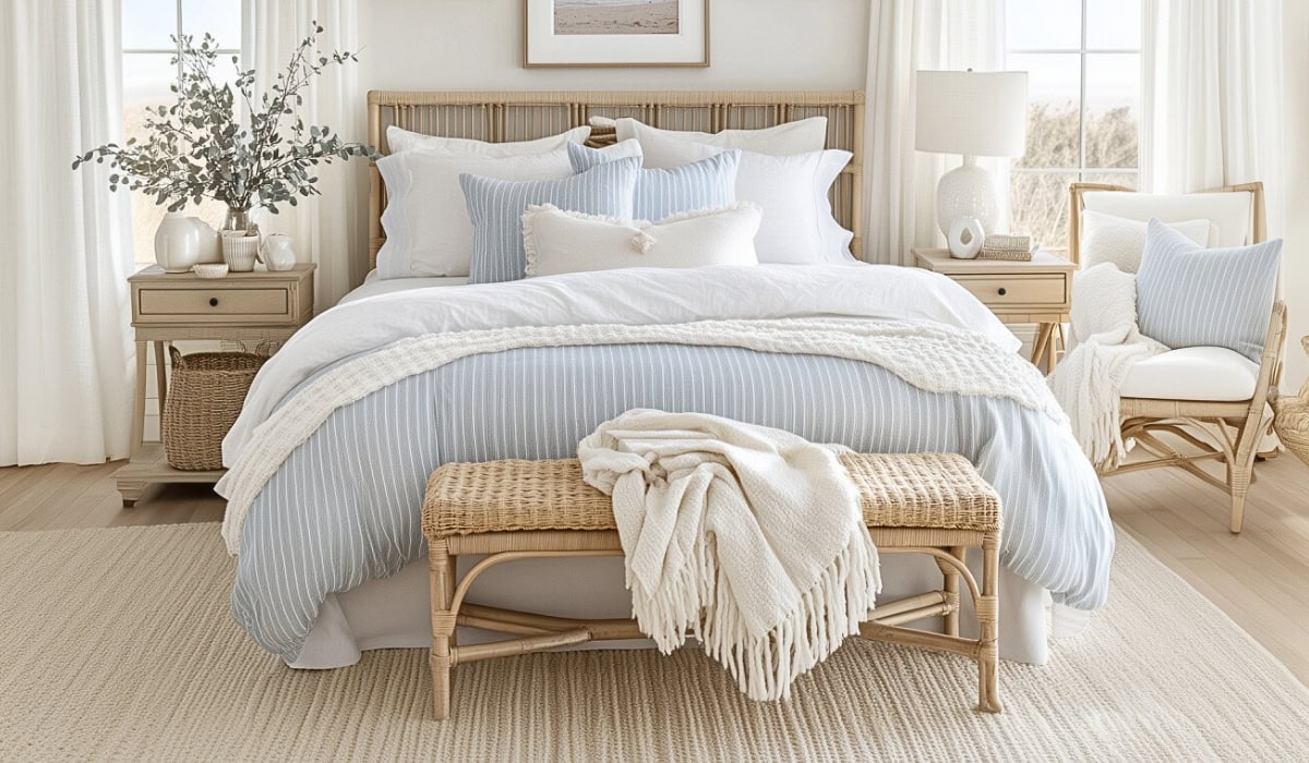 It’s still cozy, still elegant, and still has that “I summer in Nantucket energy” but with a more modern minimalism, and youthful vibe. In this guide, we’re breaking down exactly how to get the look…without making your bedroom feel like a themed Airbnb.