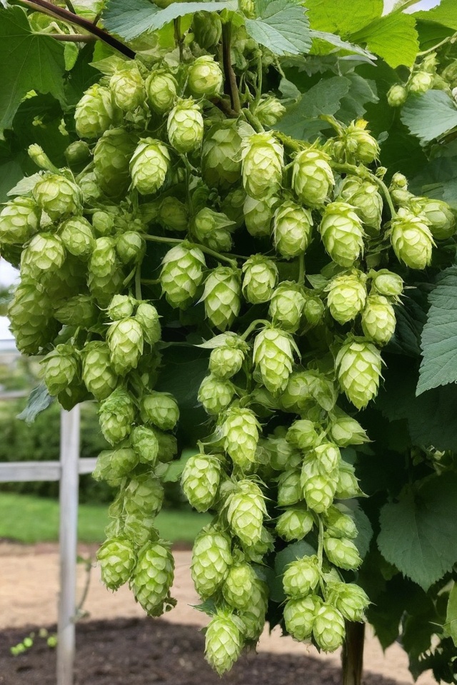 Hops also need plenty of space to climb, so think vertical. A tall trellis or sturdy poles will give your hops the support they need as they grow upwards, sometimes reaching up to 20 feet!