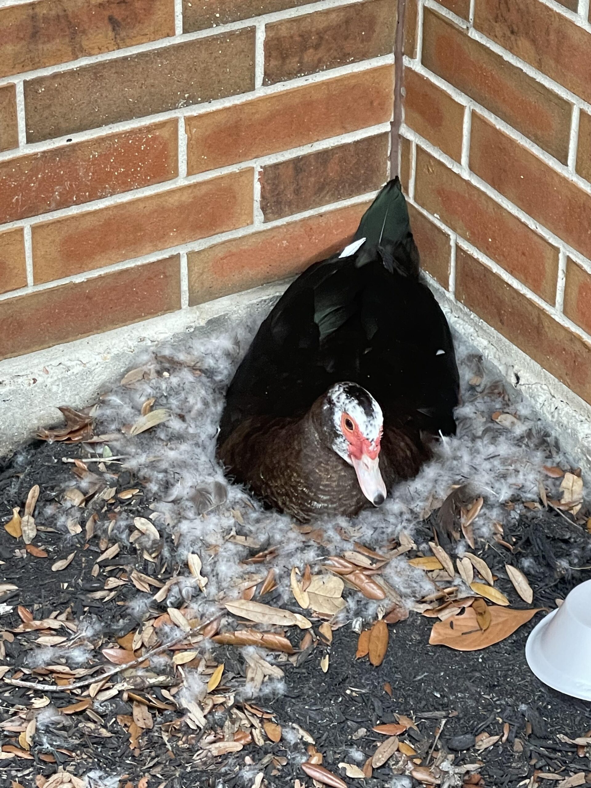 A customer for my job had this wild duck lay her eggs in this corner in the front of their house right next to the front door. This is in the middle of a pretty populated suburb. They must be people putting off some good energy. Pretty proud mama!