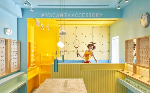 Já decidiu entrar em algum estabelecimento só porque a fachada te chamou atenção? Este foi o intuito do escritório 045tilt ao projetar a loja de acessórios Vacanza Accessory, em Taipei, Taiwan. A partir do tema ginásio de esportes, eles desenvolveram cada detalhe do espaço, desde os revestimentos até os detalhes de decoração.