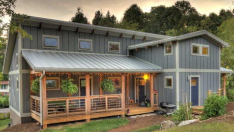 I travel up to the North Carolina mountains frequently and hope to visit their place on one of my trips this year. (Of course, this was news to them when I first posted the article in the Energy Vanguard Blog, since I hadn’t asked them yet. Nothing like publicly inviting yourself to someone’s home, right? Fortunately, they responded positively!) The photo below shows the front of their home in its natural habitat. (As far as I know, it never leaves that habitat, but with a net zero home, you just never know.)