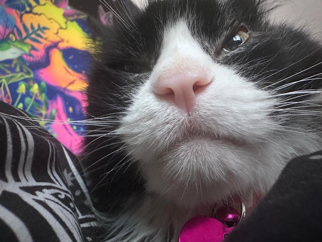 They told me he was adopted 2 years ago and dumped a few months prior to me visiting. I got surprisingly emotional about that and said I’d come back for him the next day. I don’t think they believed me lol. But I did! I gave him his own space to adjust, but he got tired of it and started coming to sleep next to me in my bed.