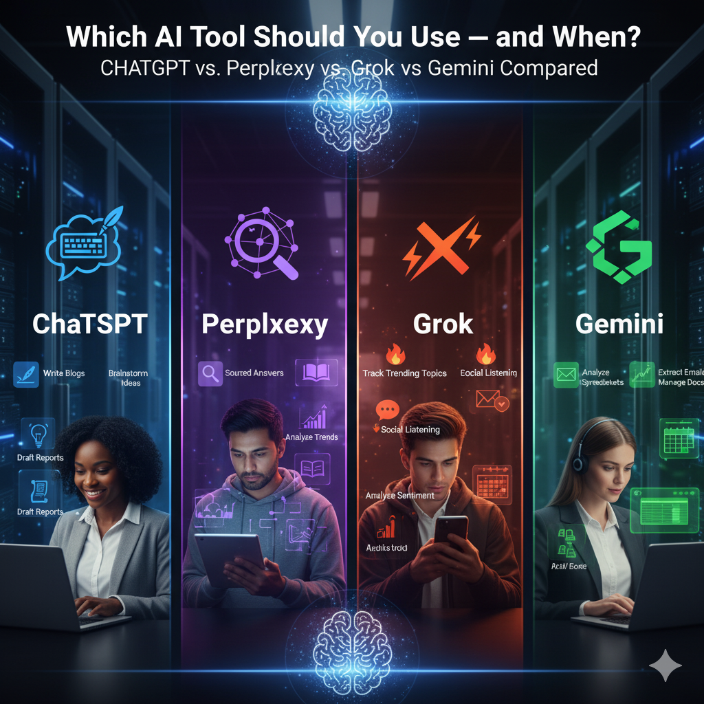 To help you navigate the ever-growing AI ecosystem, here’s a breakdown of four major AI assistantsChatGPT, Perplexity, Grok, and Gemini — and when to use each.